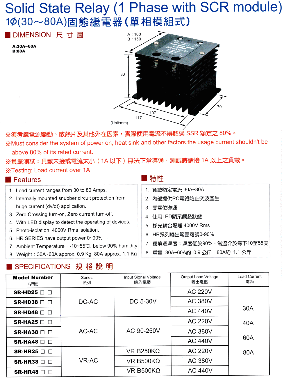 DC to AC SSR固態繼電器 (AC480V)