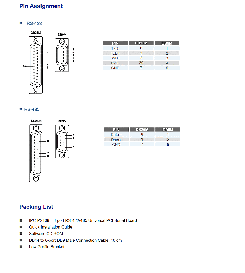 信號:RS-422: TxD+, TxD-, RxD+, RxD-, GND