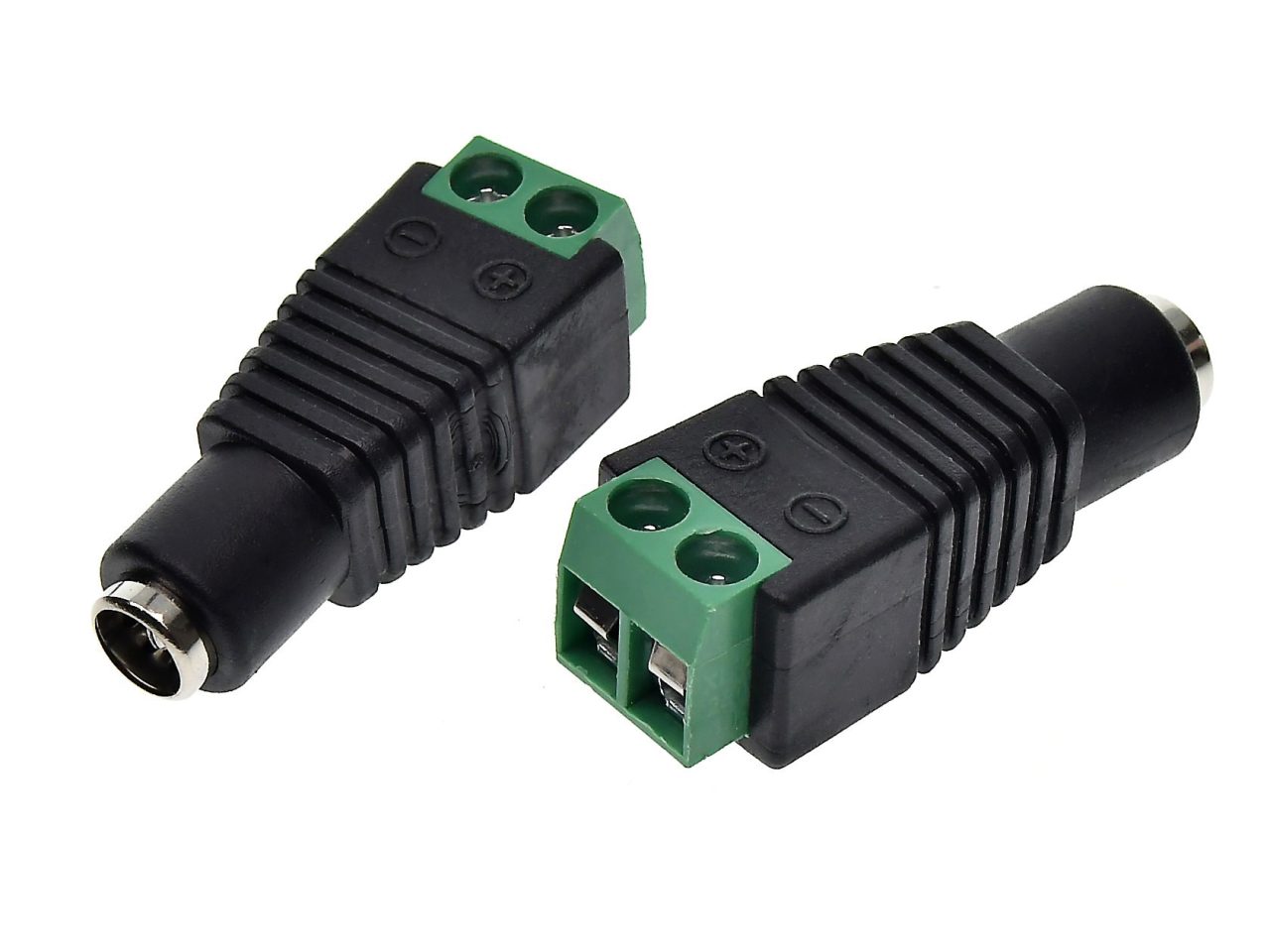 其核心優勢在於精準的 5.5mm 外徑與 2.5mm 內徑規格,能提供穩固的電力接觸。接線端子處設有清晰的正負極性標註(+ / -),有效降低接線錯誤風險;其強固的綠色端子座能承受多次螺絲鎖緊而不滑牙,確保長期供電的可靠性。