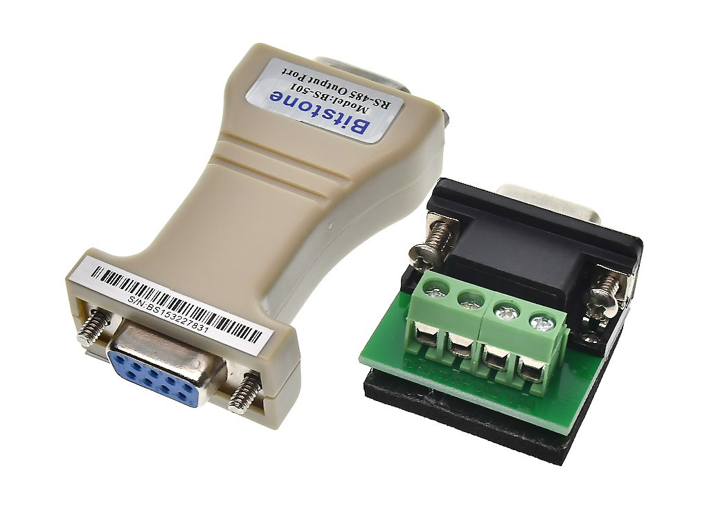 ◎ 電氣接口:RS-232端是個DB9母頭(孔形),RS-485端是個DB9公頭(針形)並連接一個接線小板