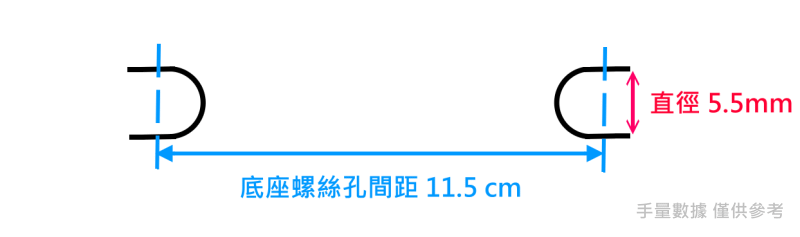◎ 帶耳底座中心點間距:約 11.5cm / 直徑:約 5.5mm