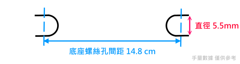 ◎ 帶耳底座中心點間距:約 14.8cm / 直徑:約 5.5mm