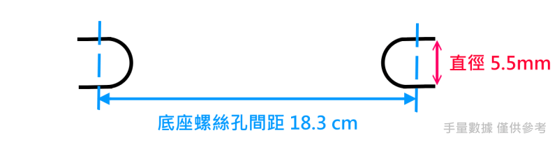 ◎ 帶耳底座中心點間距:約 18.3cm / 直徑:約 5.5mm