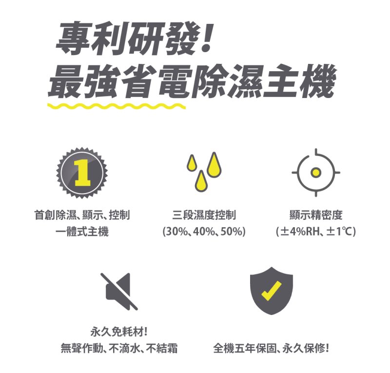 ◎ 獨家專利 全球第一顆最省電 除濕主機