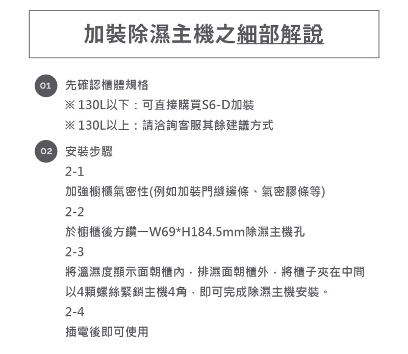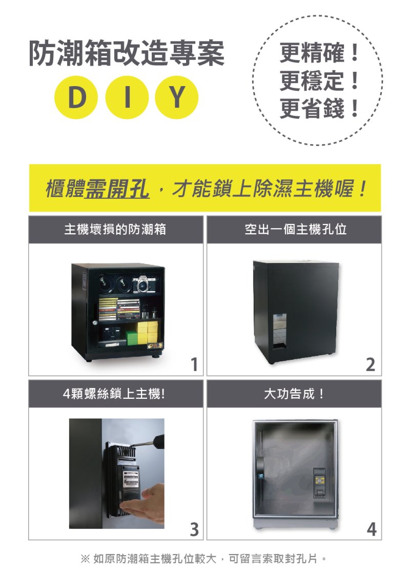 ◎ 凡使用 130L 容積以內的櫃體,主機皆可更換升級為電子式數位省電除濕箱