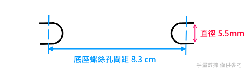◎ 帶耳底座中心點間距:約 8.3cm / 直徑:約 5.5mm