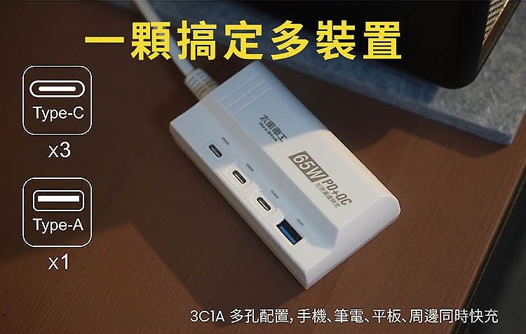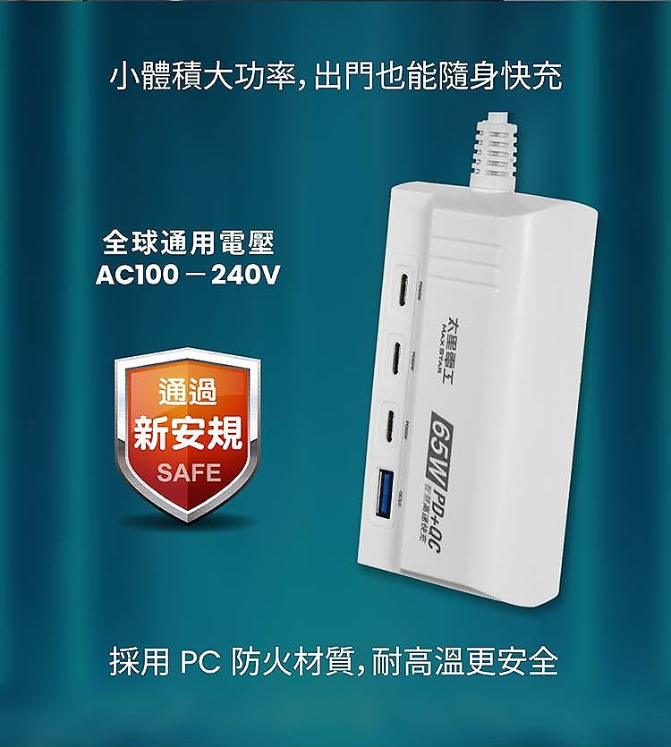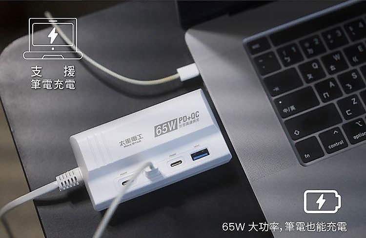 ◎ 高速快充 PD65W / QC3.0,節能省電省時
