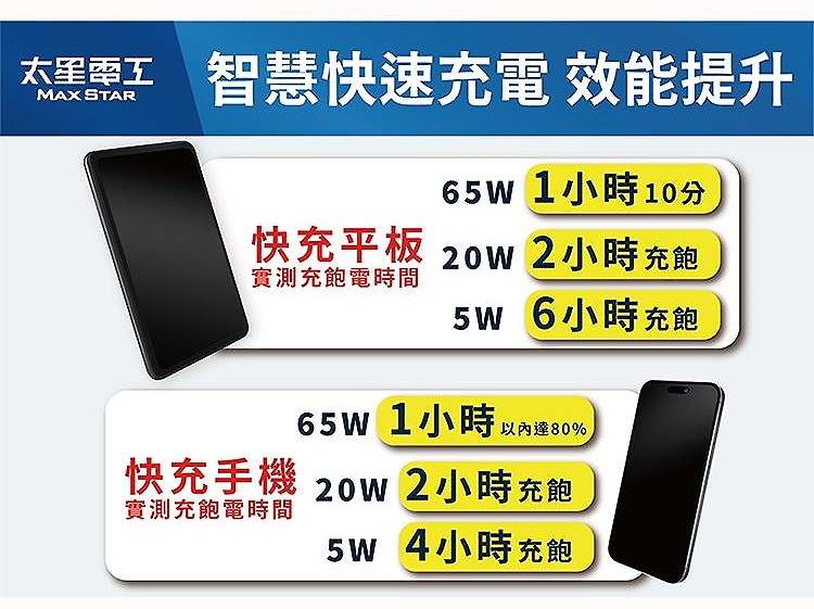 ◎ 智慧高速快充:PD65W 快充,Type A+C 四口輸出,支援多設備同時充電,省電省時