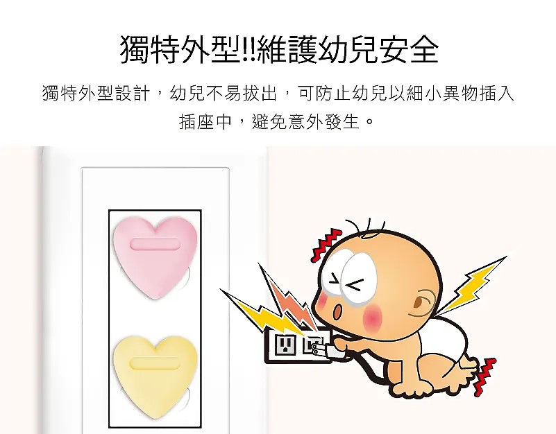 ◎ 獨特外型設計,幼兒不易拔出,可防止幼兒以細小異物插入插座中,避免意外發生