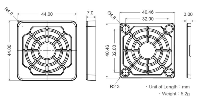尺寸 : 44(L) x 44(W) x 7(H)mm