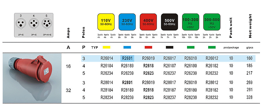 ◎ WEiPU 威浦 歐規 CEE電源連接器