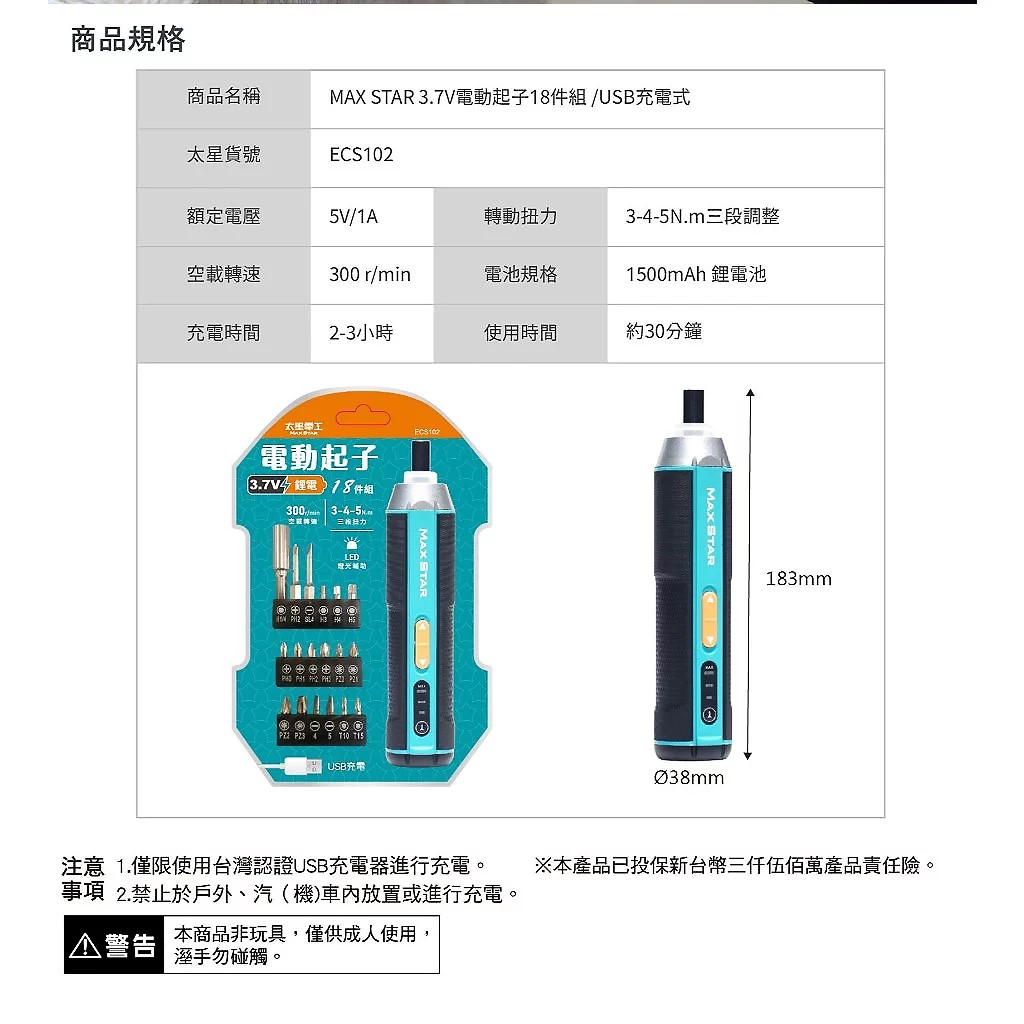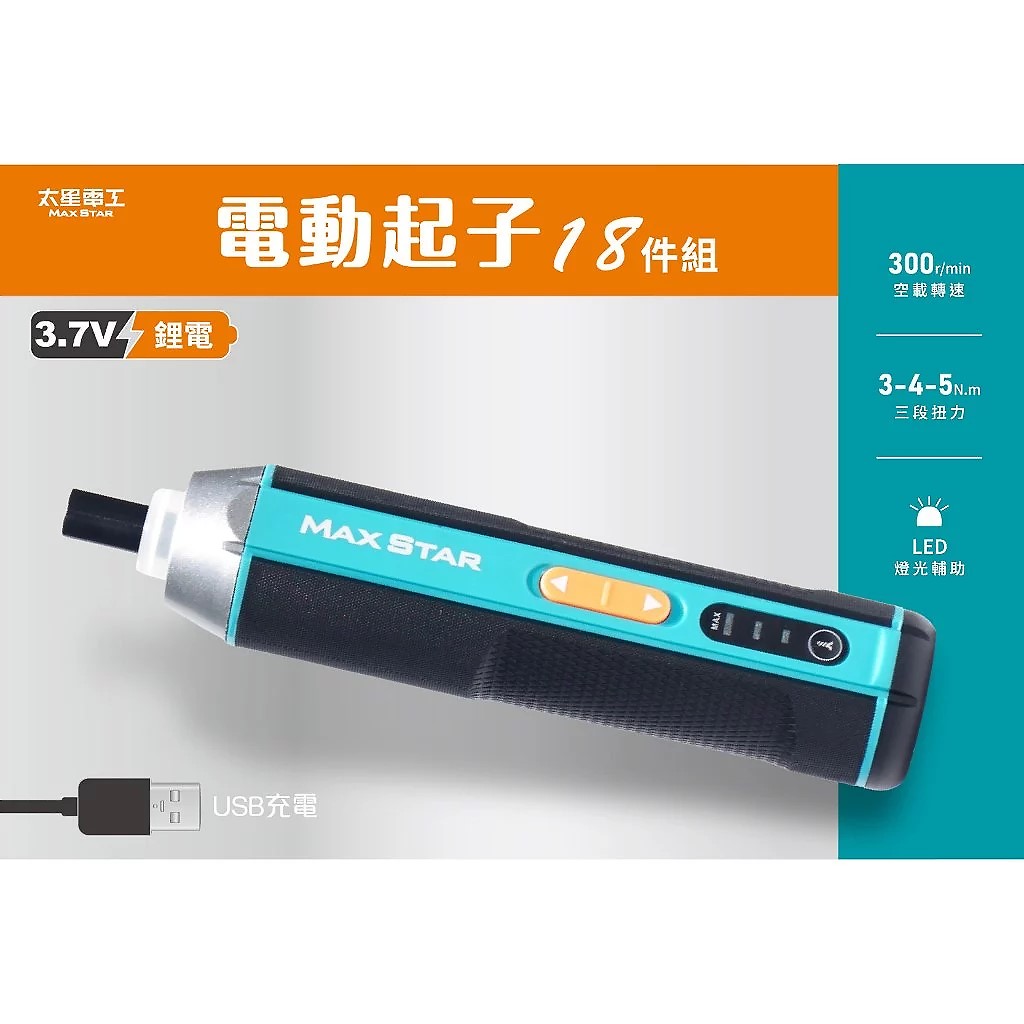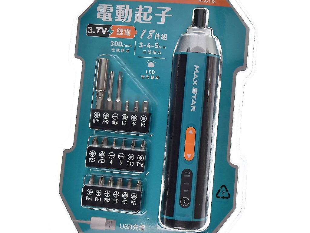 太星電工 DC3.7V 18件 USB充電式電動起子300rpm