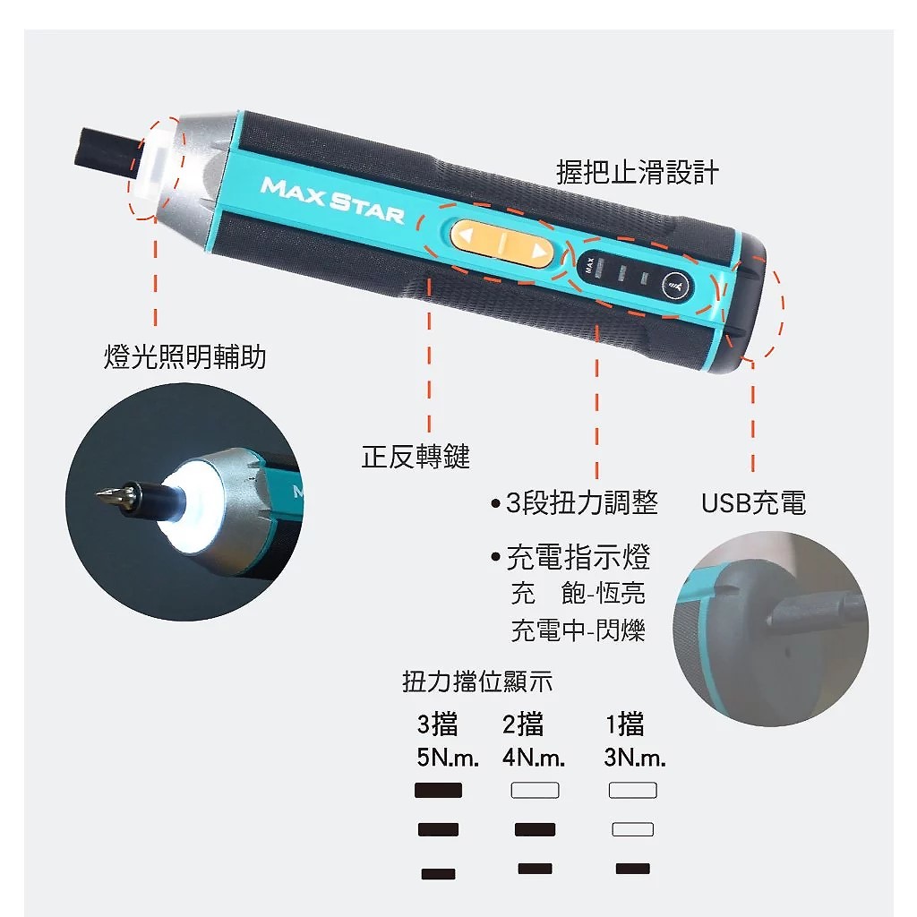 ◎ 三段扭力,依需求調整,防止過度擰緊