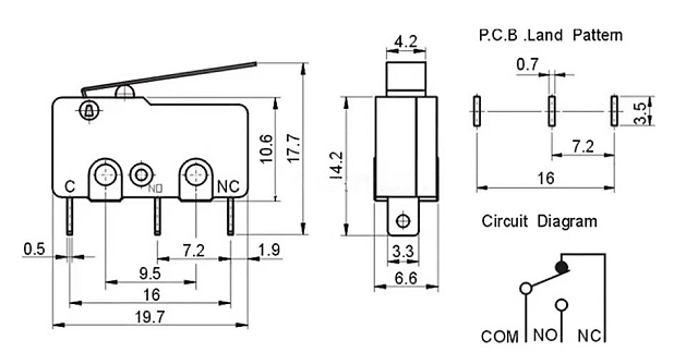 尺寸 : 20(L) x 19(W) x 6(H) mm /含柄+腳位
