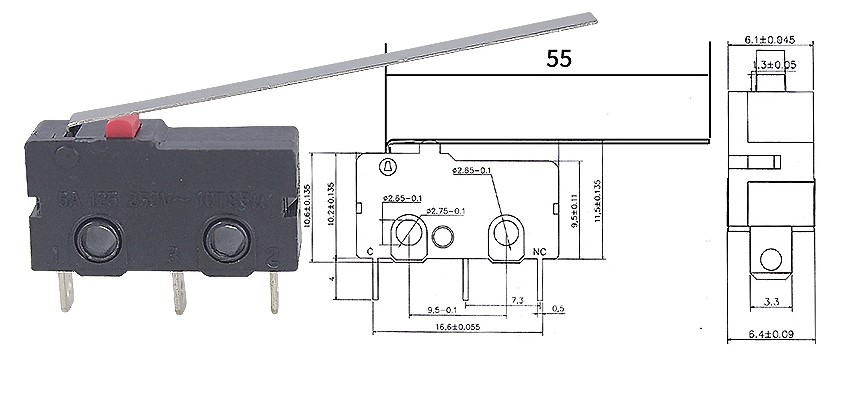 5A/AC250V 3P針腳長柄55mm微動SW