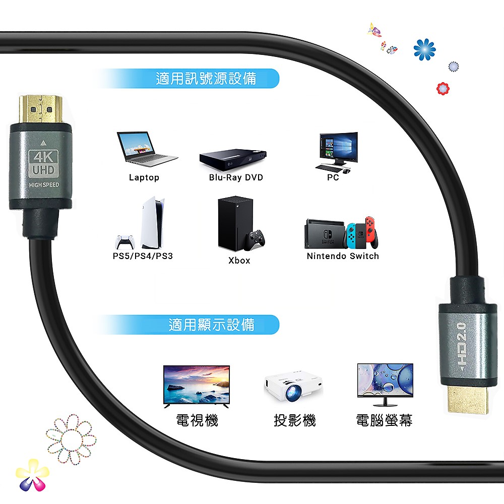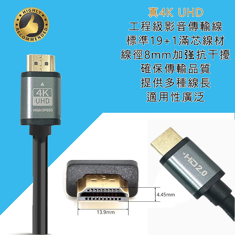 ◎ 影音同步 HDMI 真效能 4K 高清螢幕線,線徑 8mm