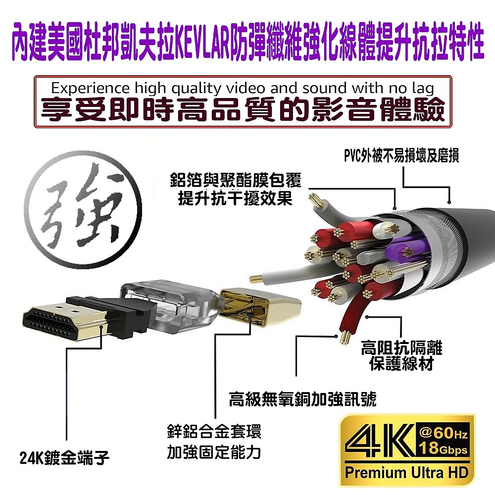◎ 內建美國杜邦凱夫拉防彈纖維線體,抗拉強度達 1800 磅,是一般 HDMI 線的 2 倍