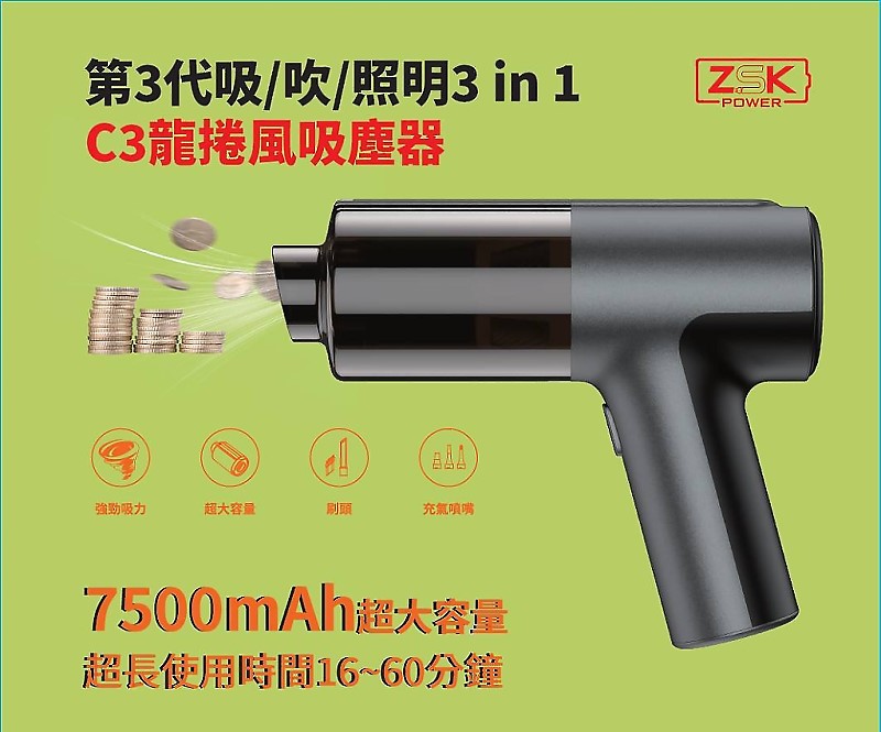 ◎ 超長使用時間 16~6 0分鐘,7500mAh超大容量