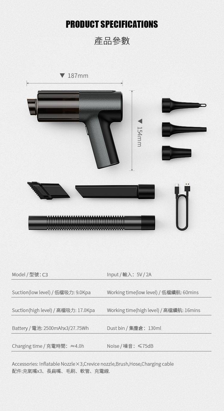 ◎ 兩段吸力設計使用時間可從 16~60 分鐘