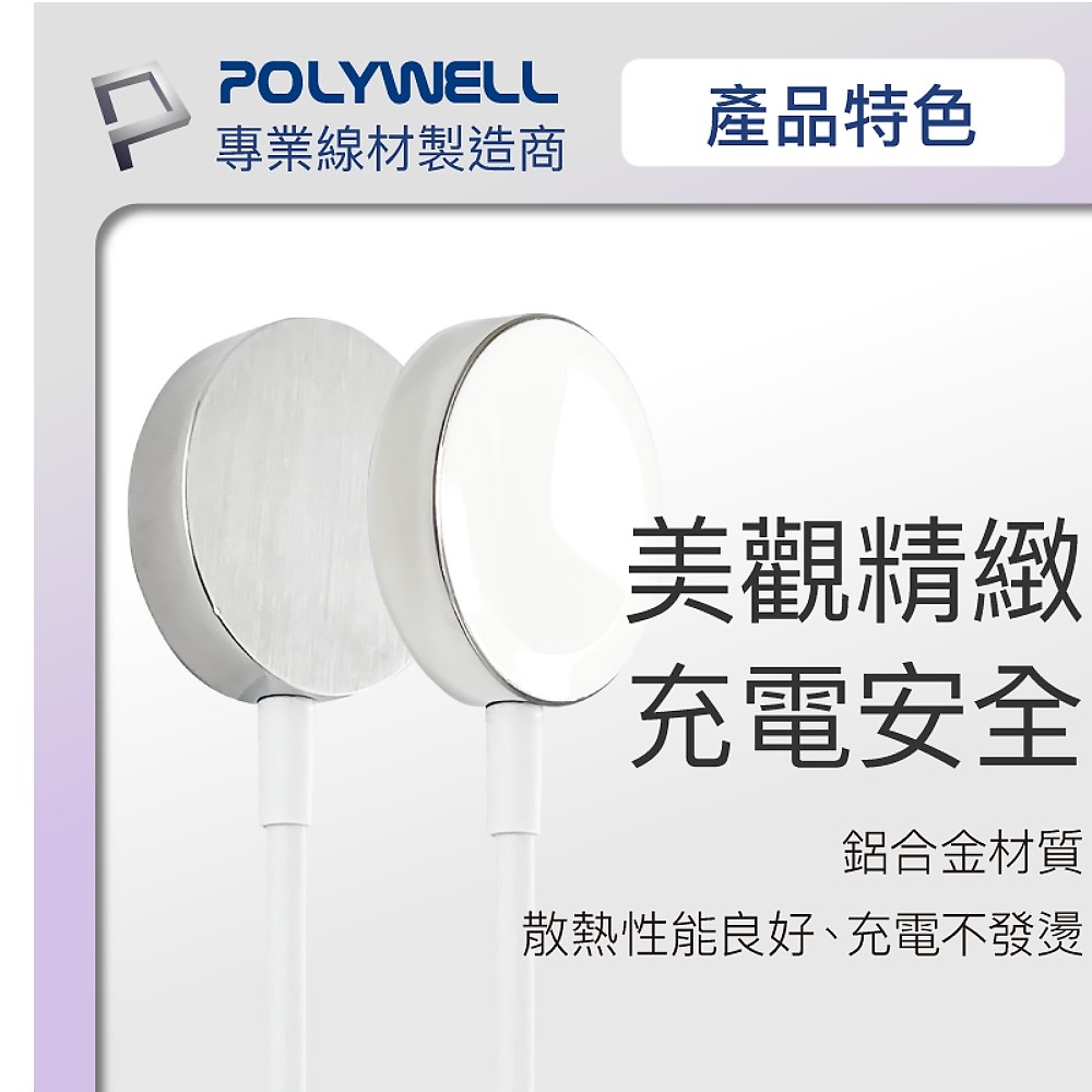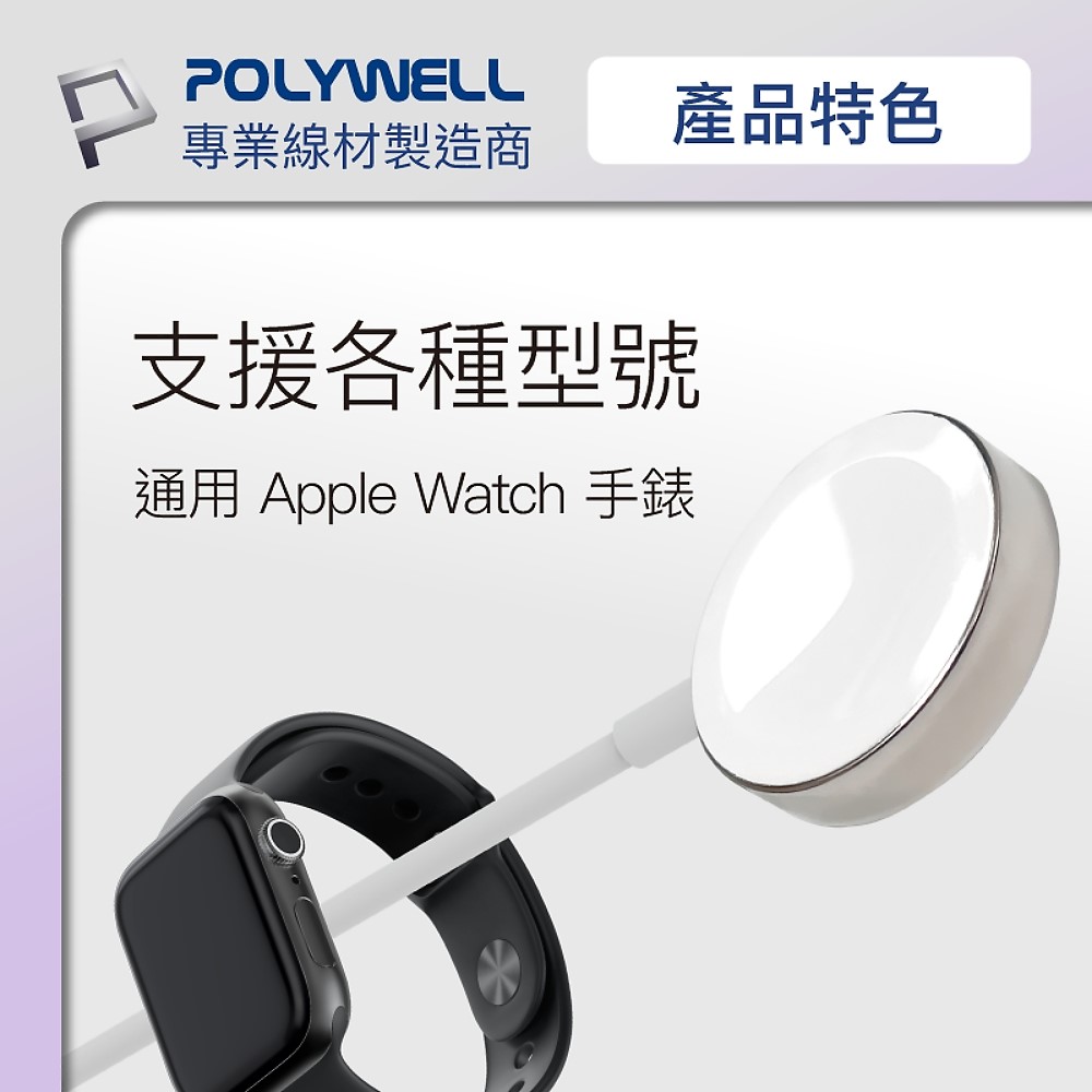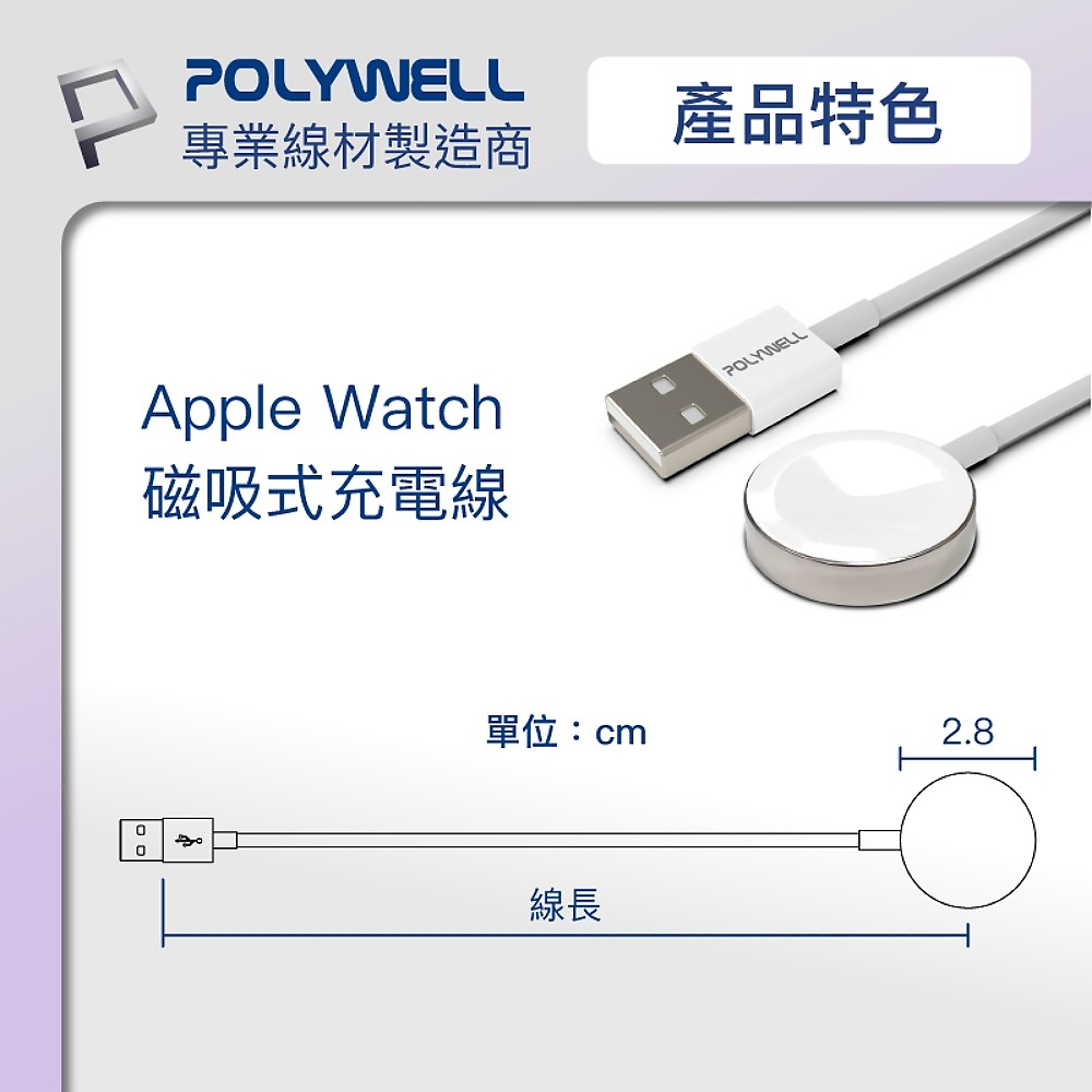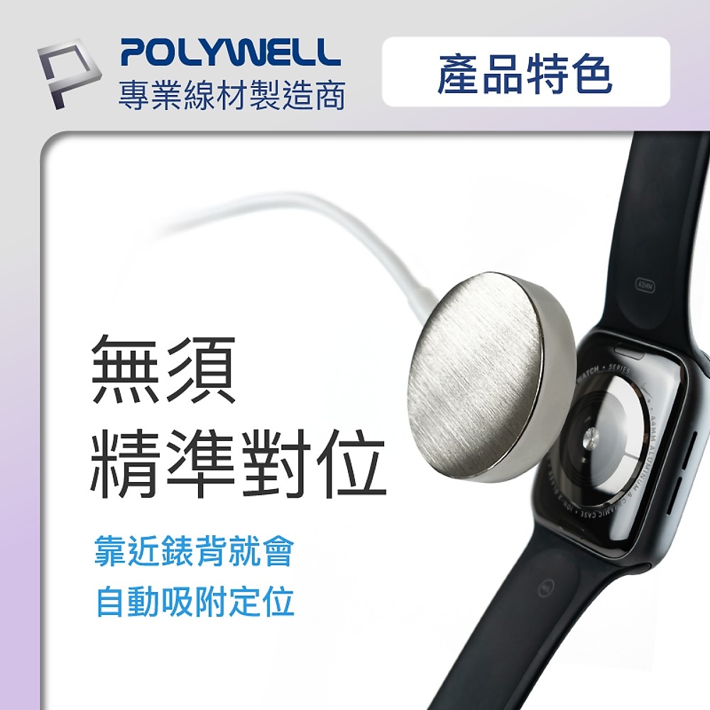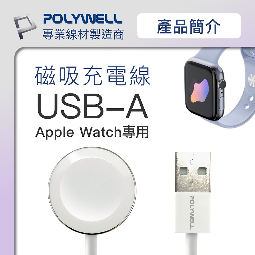 POLYWELL寶利威爾 USB-A公 Apple Watch 磁吸充電盤2M