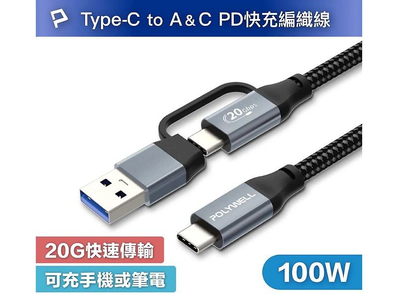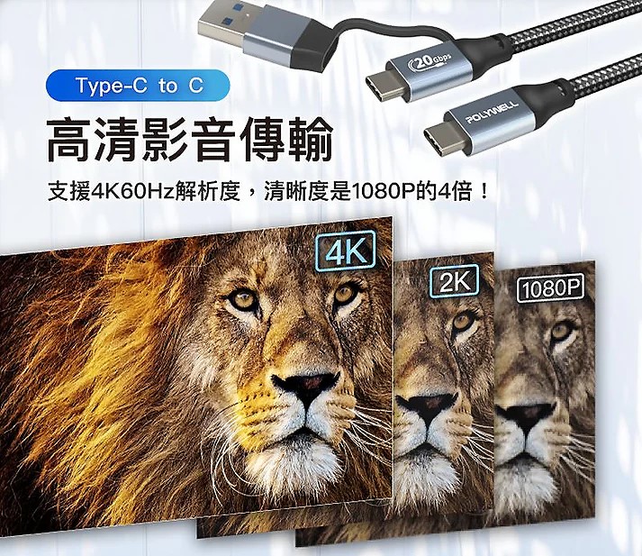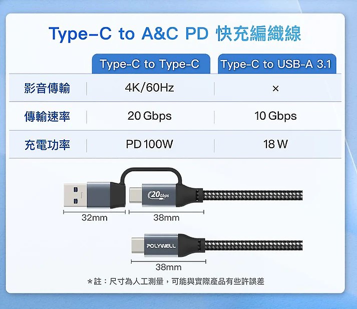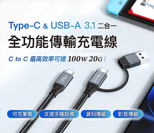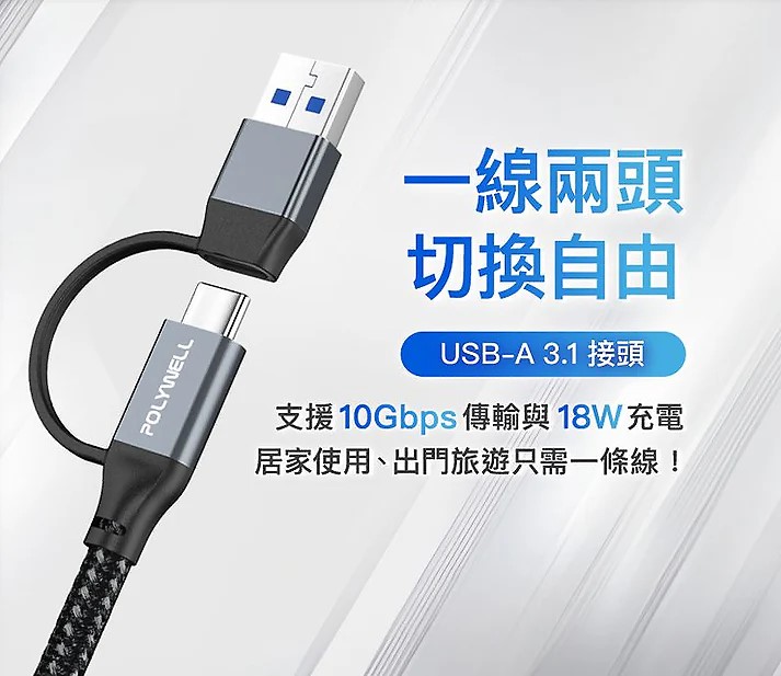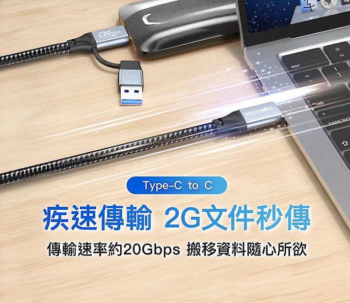 ◎ 隨線附帶一個 Type-C To USB-A Gen2 20G 轉接頭,一線二用