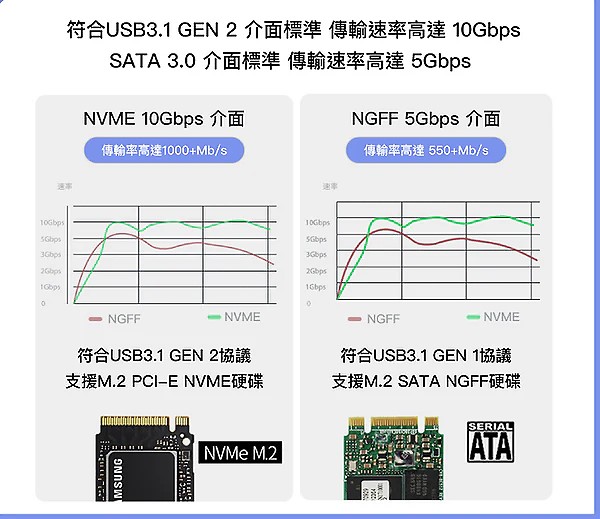 ◎ 產品規格:NVMe + NGFF 雙協議通用