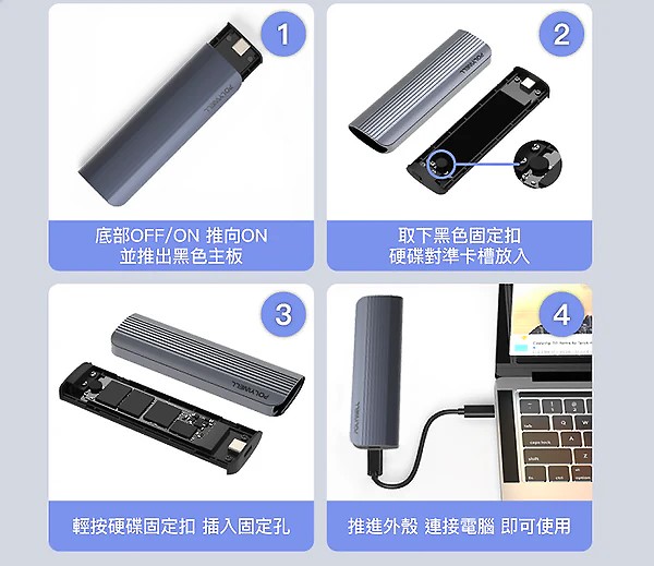 ◎ 一個外接盒皆可安裝 NVMe 或 NGFF 規格的固態硬碟使用