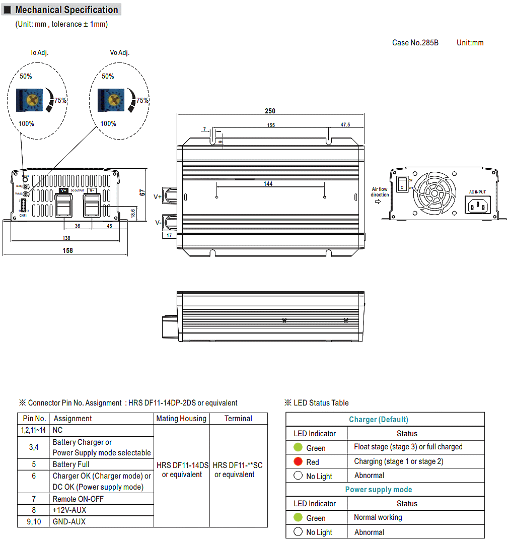 ◎ 輸出:均充電壓14.4V、浮充電壓 13.8V