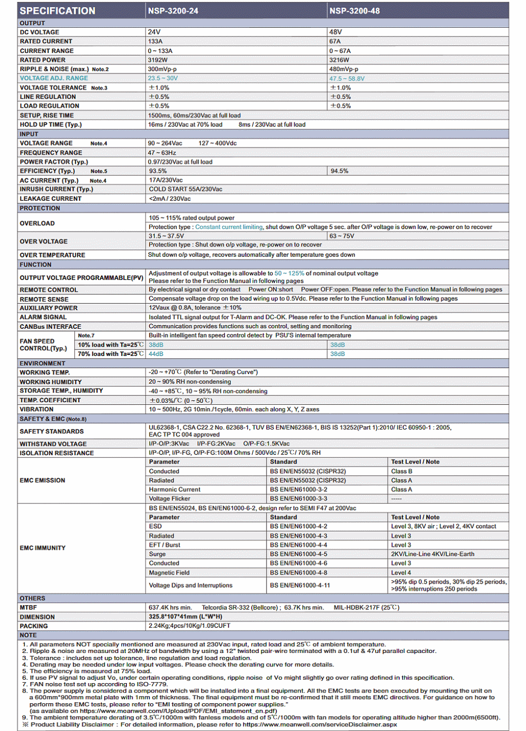◎ NSP-3200是一款3.2KW單組輸出機殼型交流變直流電源供應器,具有1U低外型和37W/inch3高功率密度。整系列輸入電壓範圍為90~264VAC,並且能提供可滿足大部分工業需求的直流輸出。每個機型可透過內部控速風扇來風冷。另外 NSP-3200 利用內建多種功能如輸出電壓可調整,遙控開 / 關控制,輔助電源等功能提供多種設計靈活性