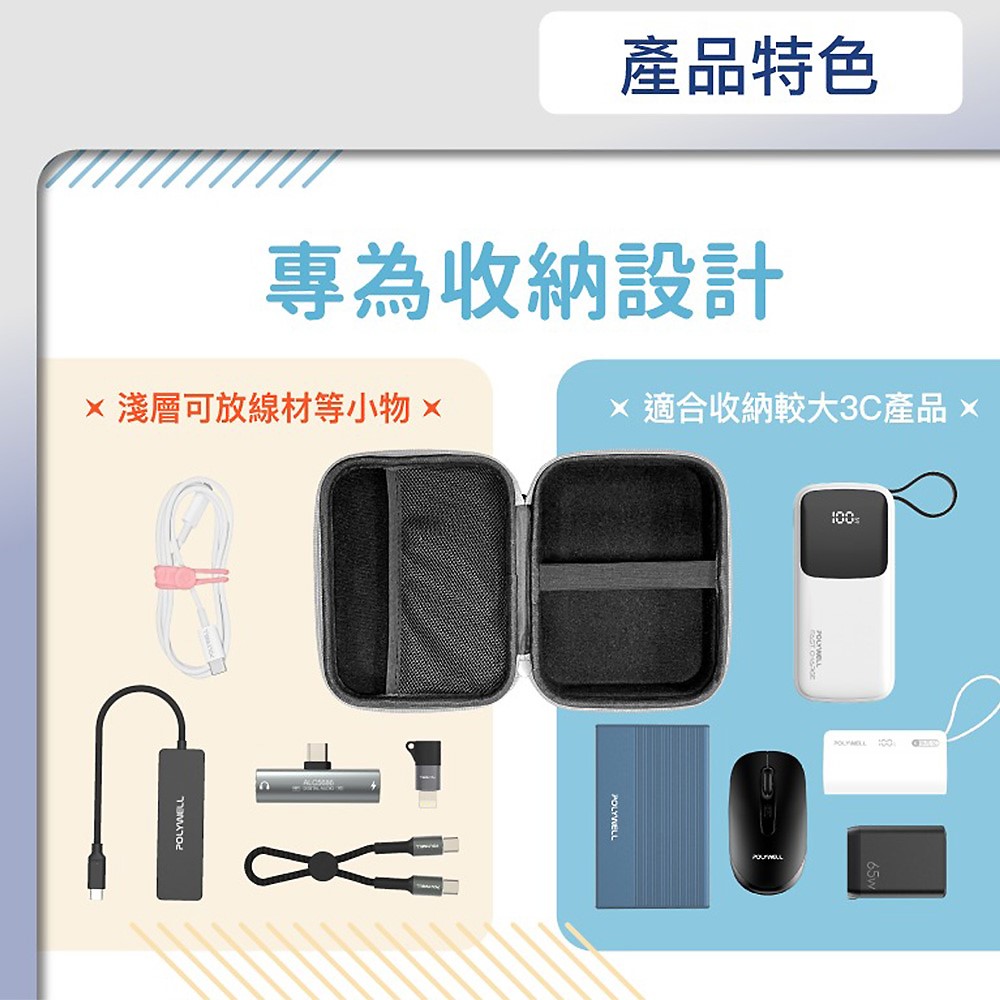 ◎ 無論是旅行或日常使用,這款配件包都能讓您的3C配件井然有序,方便攜帶