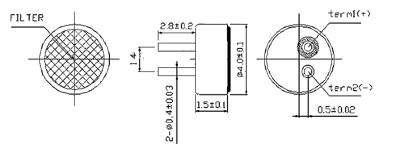 Ø4 x1.5mm DC2V 電容式麥克風 (超小型)