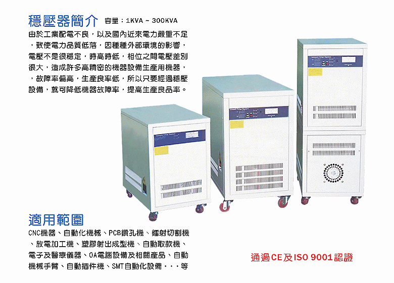 ◎ 穩壓精確度:1%在全載要求下,輸入電壓,在 + 10~ - 20%或 15%,可同時變動 0.5%在無負載要求下,輸入電壓在 + 10 ~ - 20%或 15%