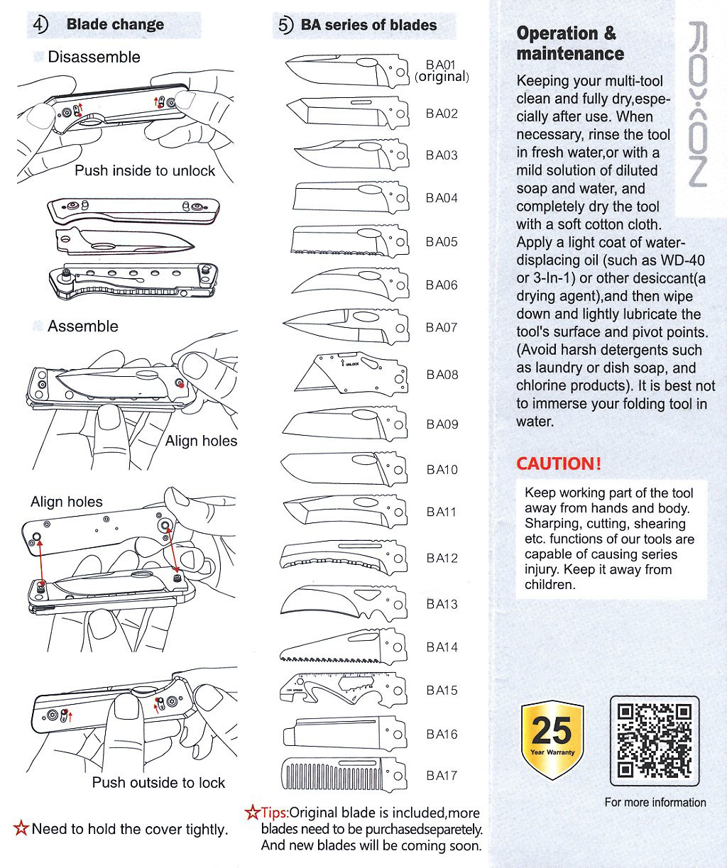 ◎ 內容物:刀具主體、星形扳手、攜存袋、說明書