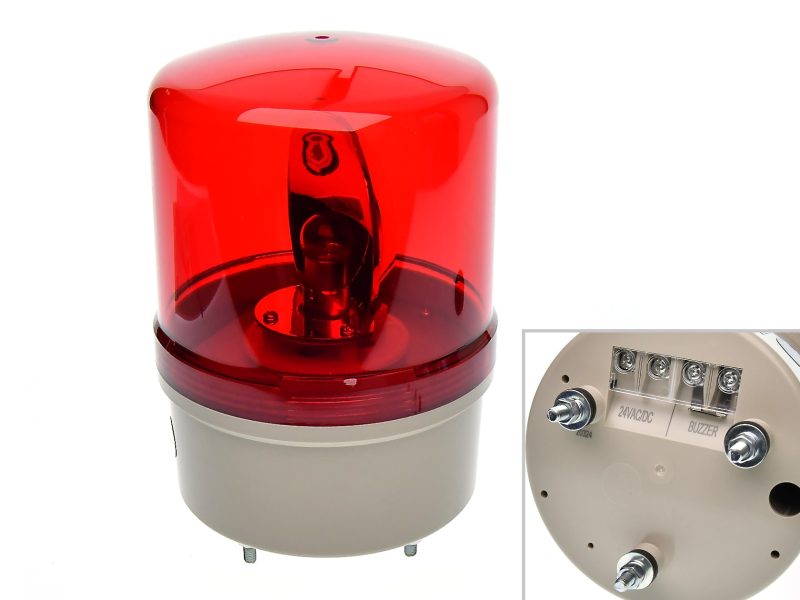 Ø120mm AC/DC24V 紅色 旋轉透明蜂鳴型 鎢絲警示燈(螺絲接線型)