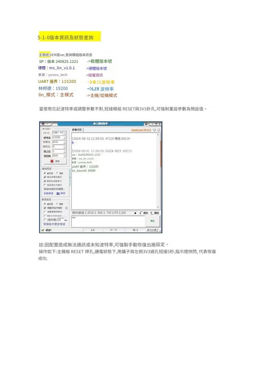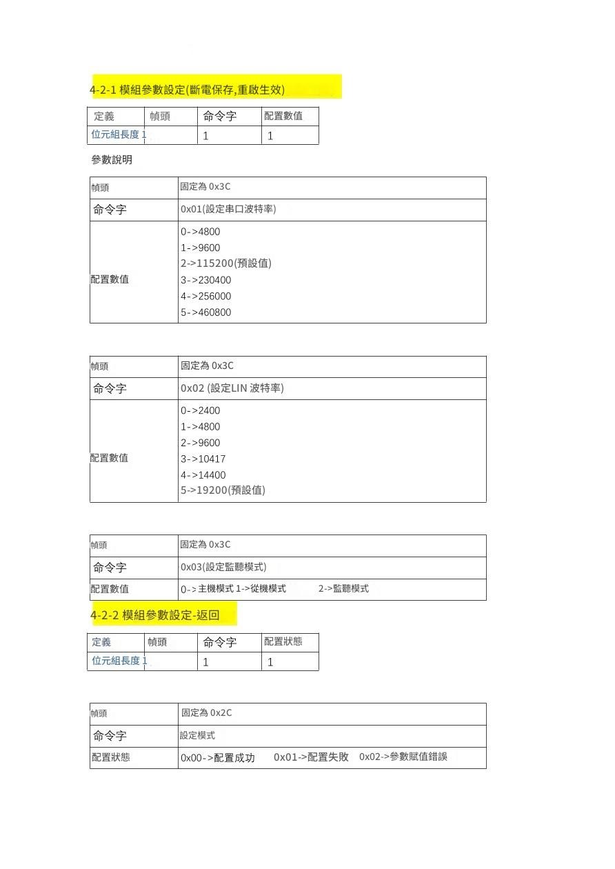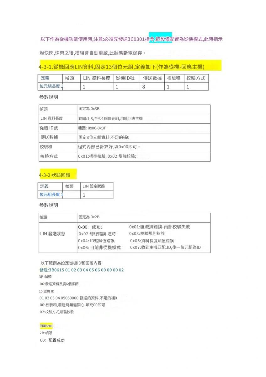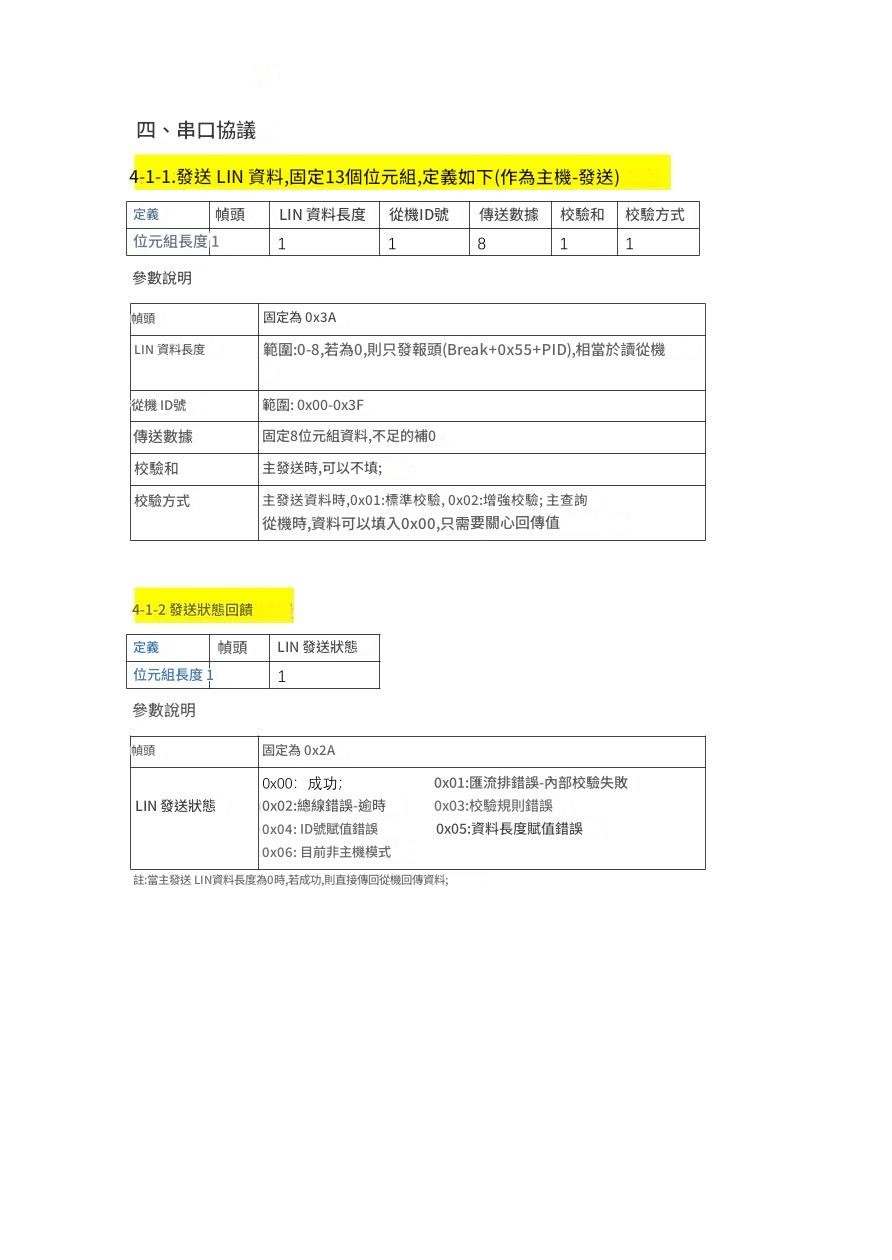 LIN 介面:波特率範圍: 2400bps ~ 19200bps