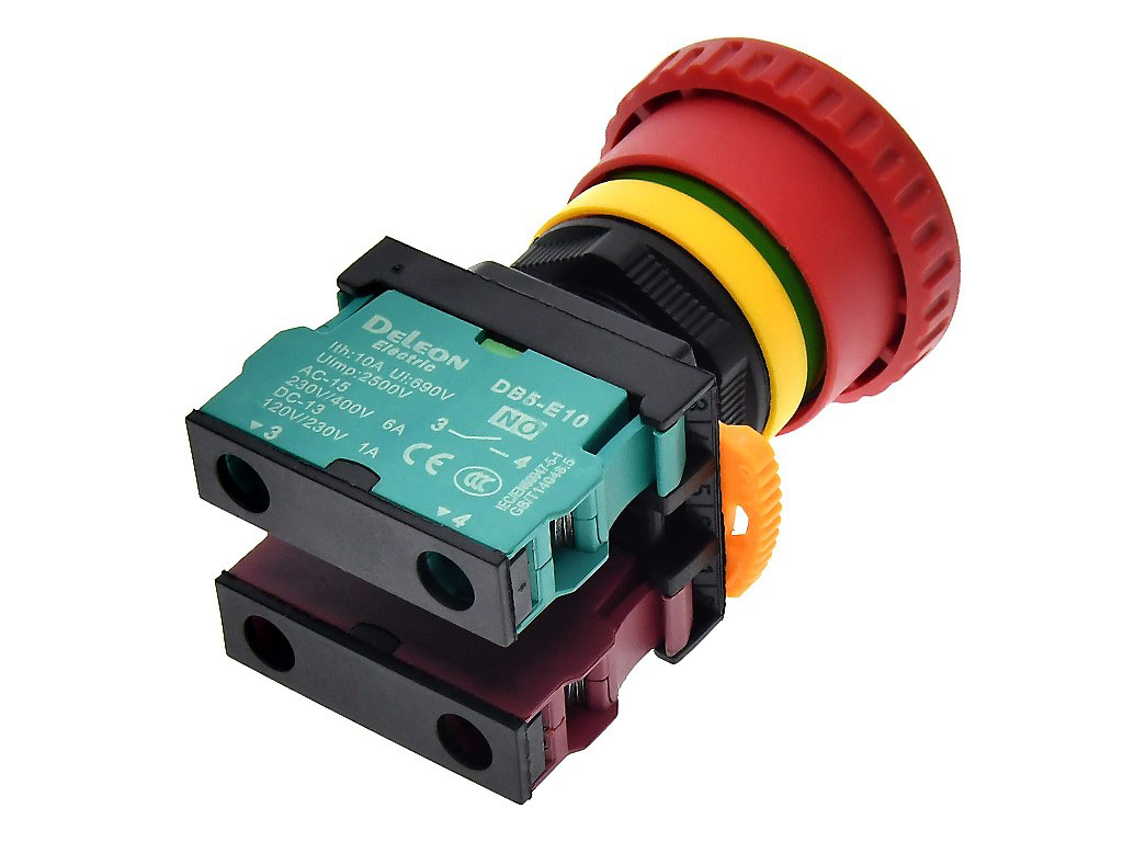 ◎ 急停鈕開關鎖定時有雙卡銷固定,性能更穩定,壽命更長。每層可安裝三副觸點模組