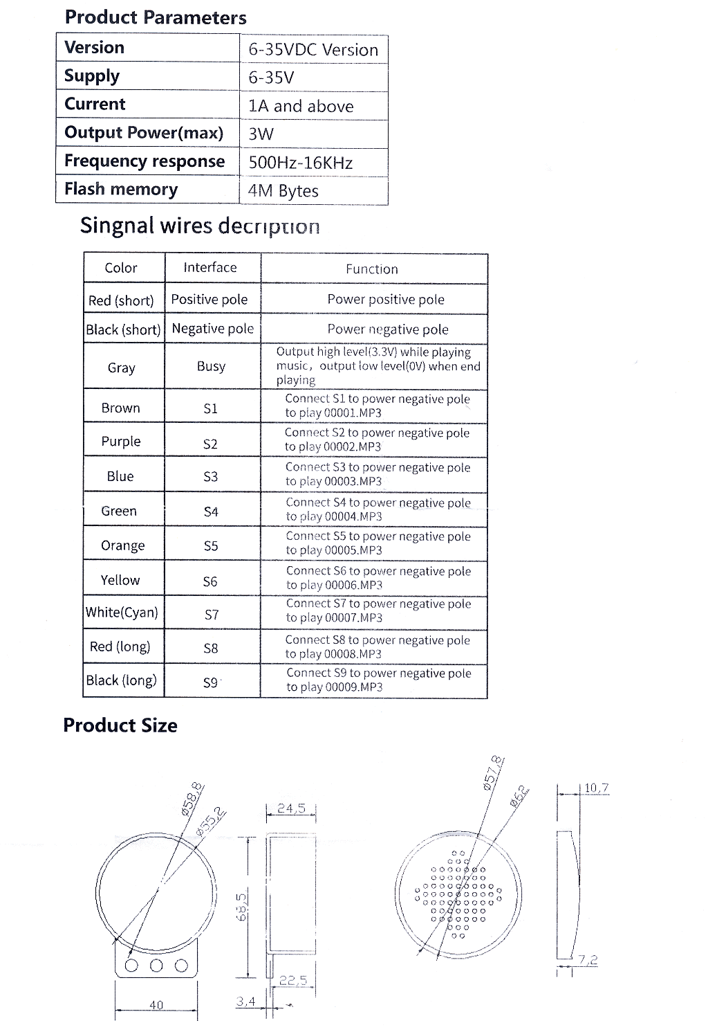 DC6~35V供電 多路觸發 自定義語音撥放器