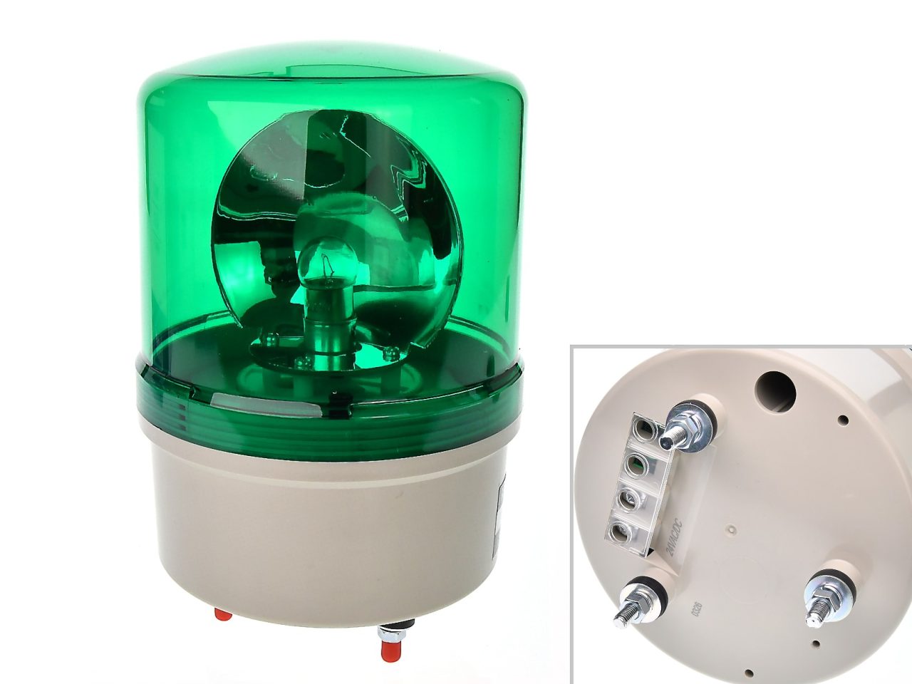 Ø120mm AC/DC24V 綠色 旋轉透明型 鎢絲警示燈(螺絲接線型)