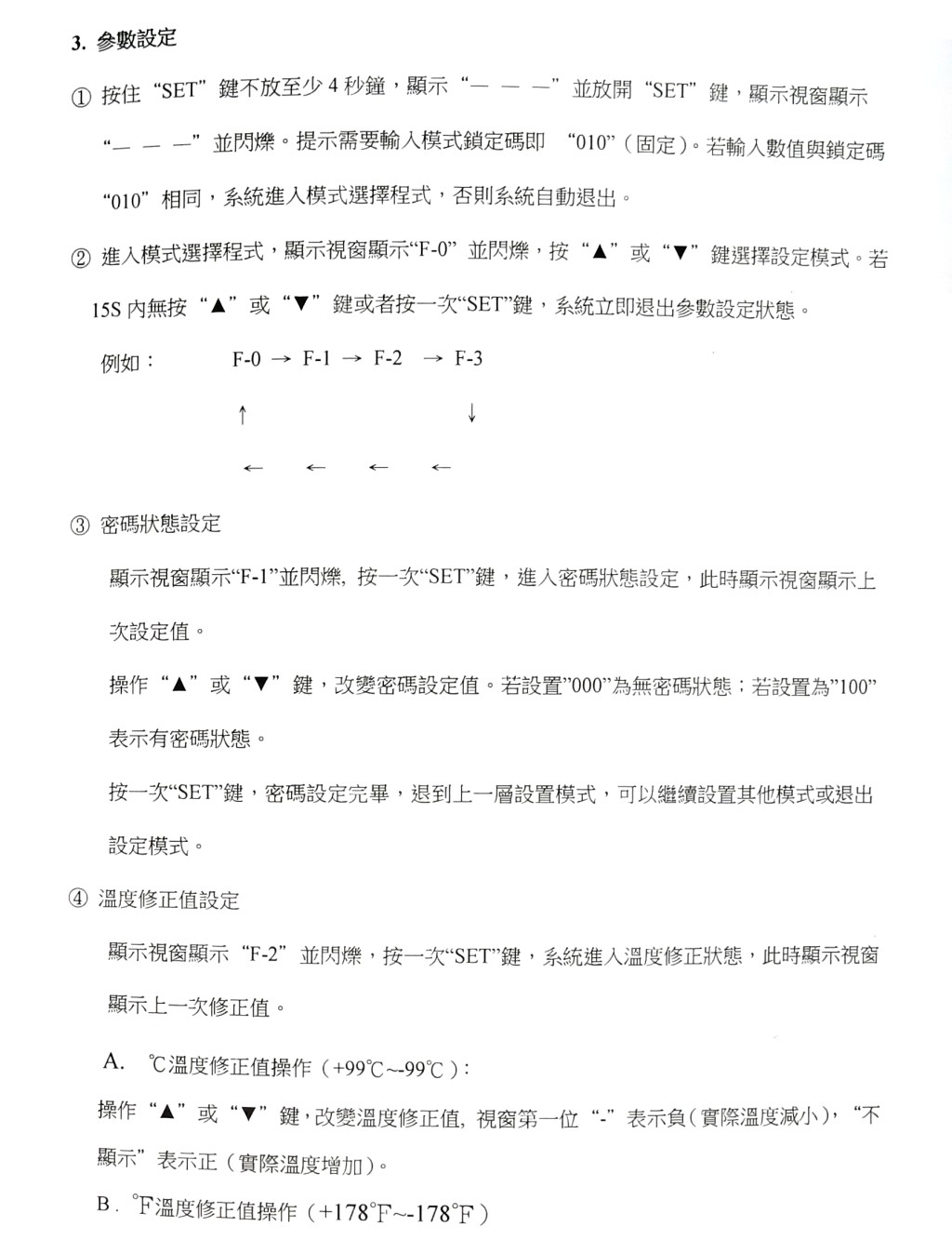 ◎ 溫度設定範圍: