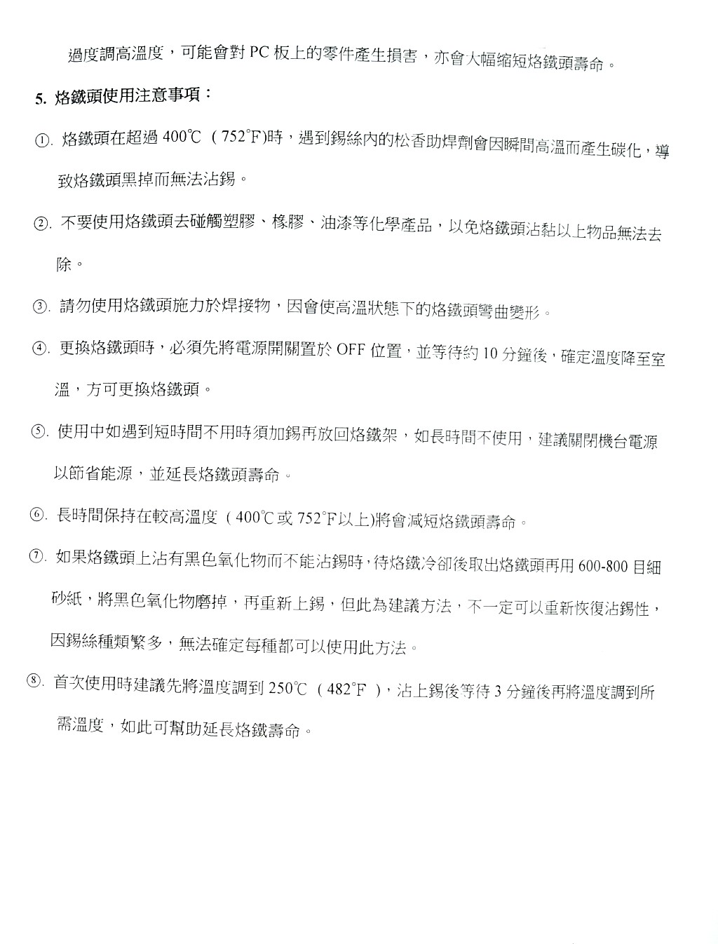 烙鐵 200°C-450°C (正負誤差3°C)
