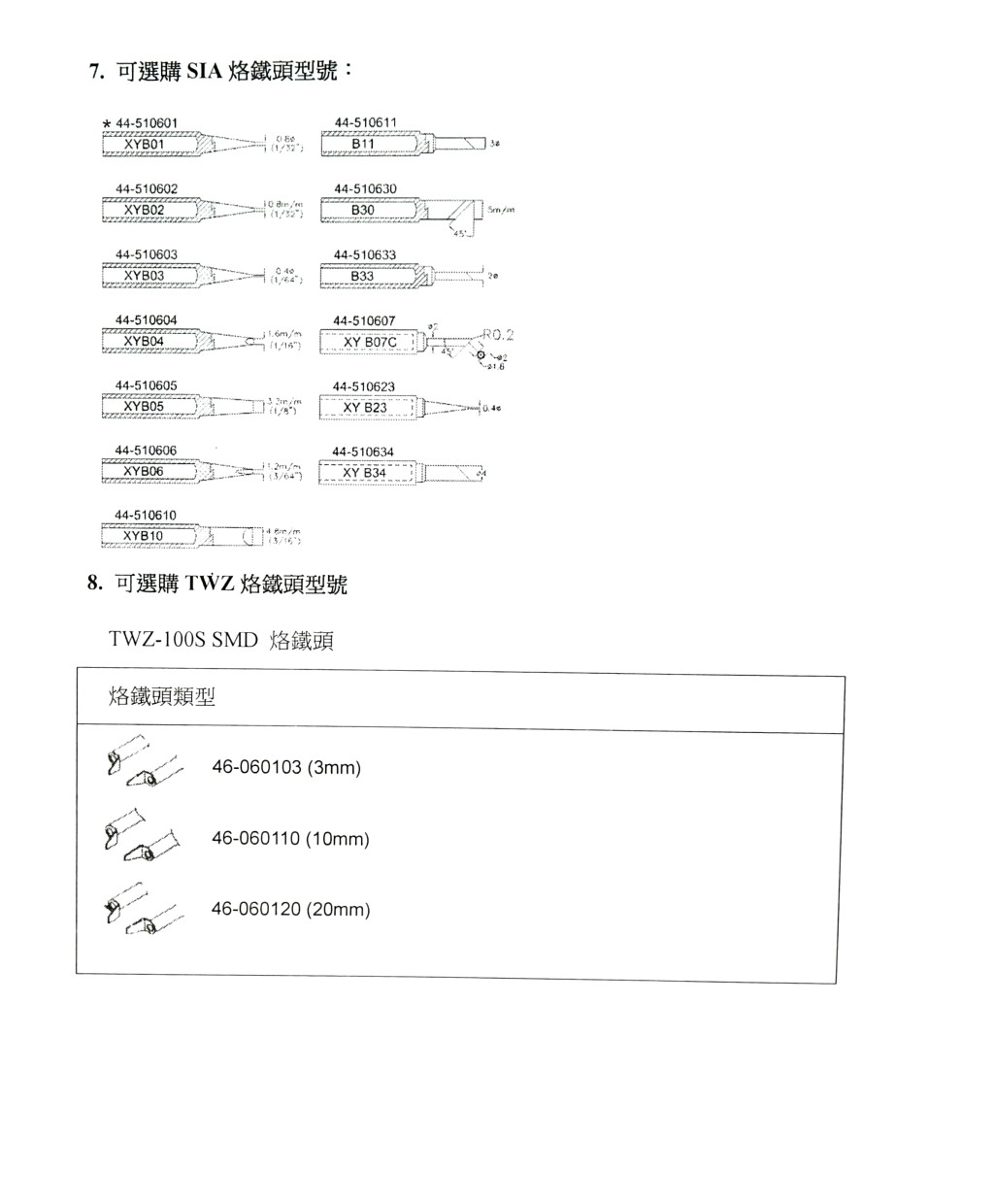◎ 標準烙鐵頭附 XY-B01