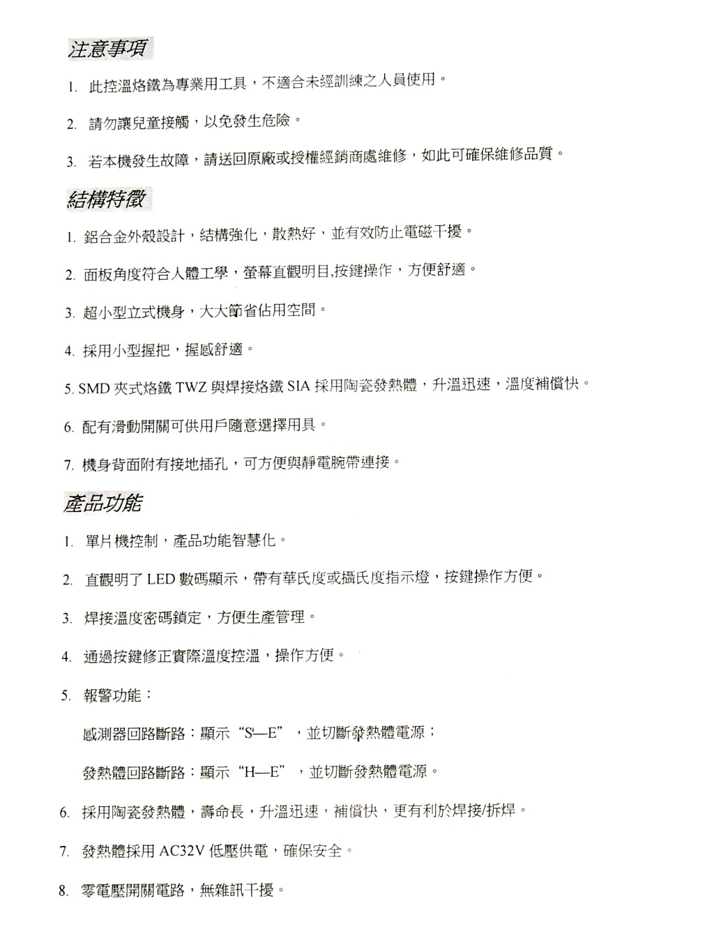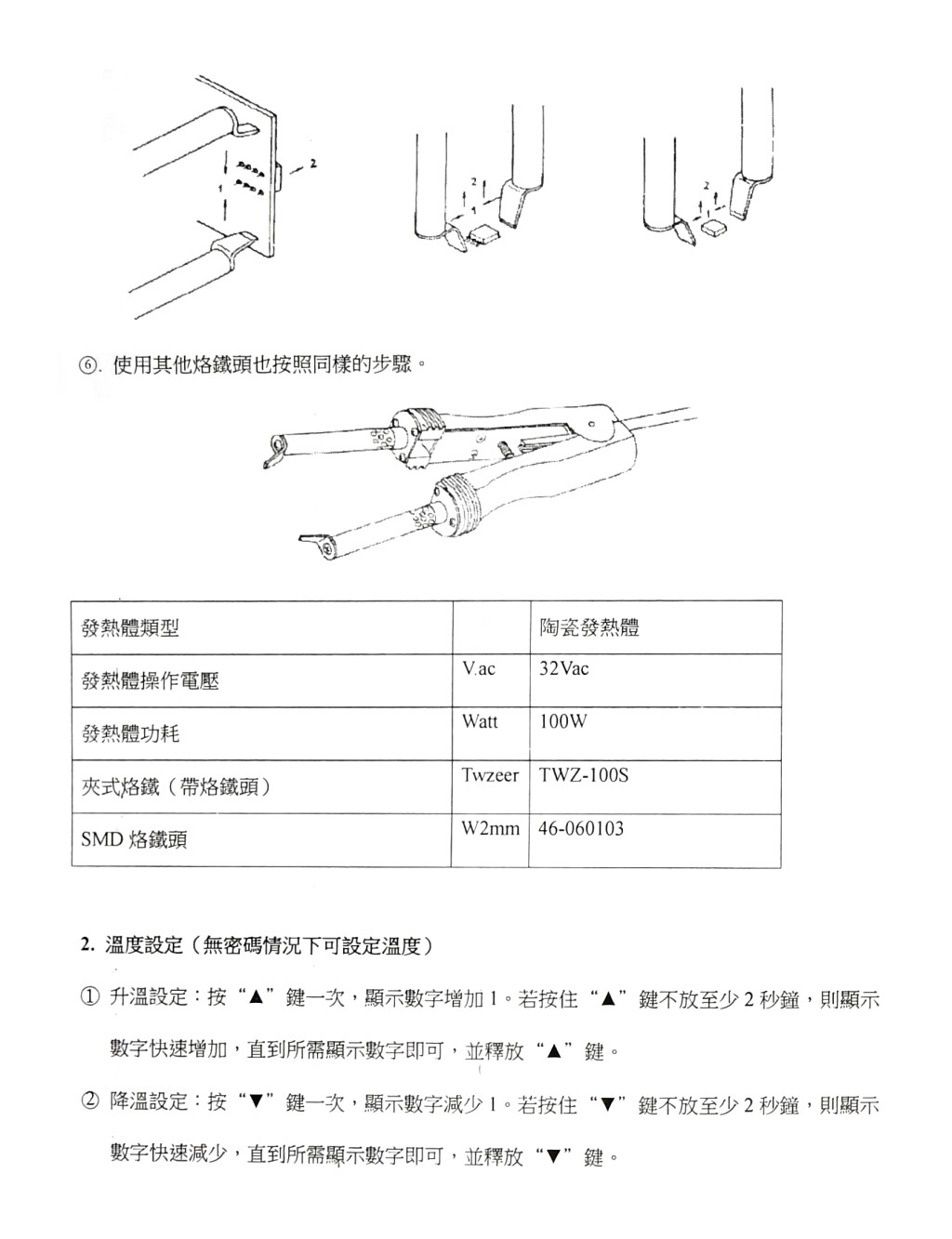 ◎ 輸出功率:烙鐵及夾式烙鐵 100W