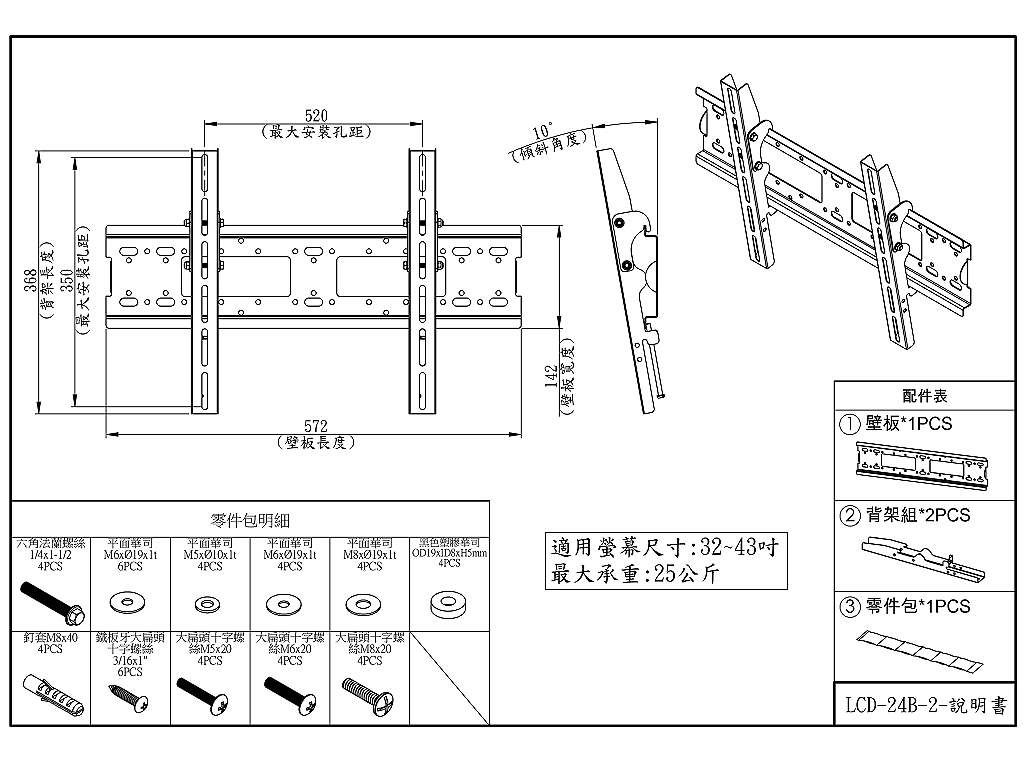 本產品專為系統整合商、室內裝修機電團隊與展演空間管理員設計。其通用的安裝孔位與隨附的完整零件包,能輕鬆適應 32 至 43 吋主流尺寸螢幕,是辦公室設備升級、連鎖門市電子看板佈署以及各類監控中心工程專案的理想採購選擇。