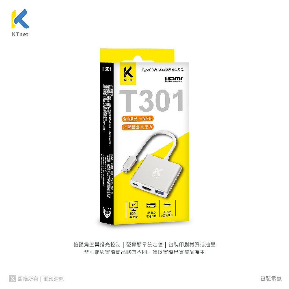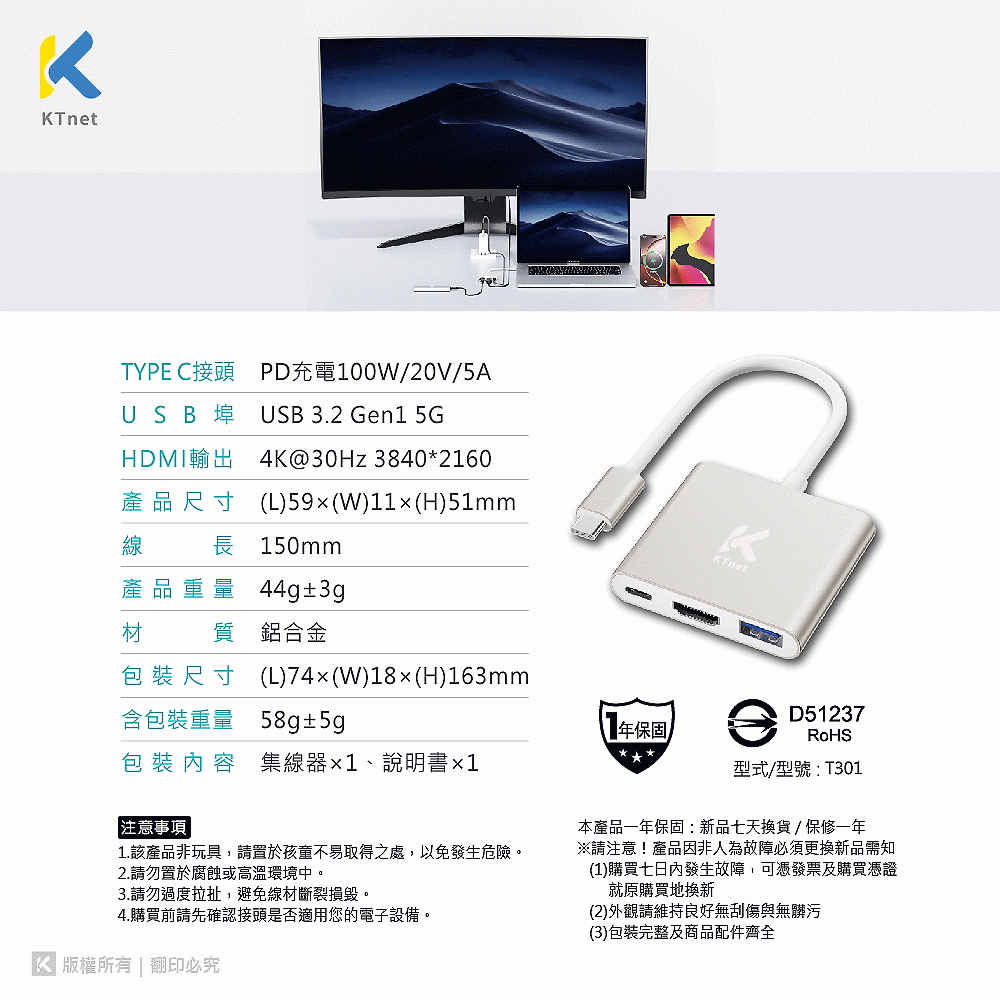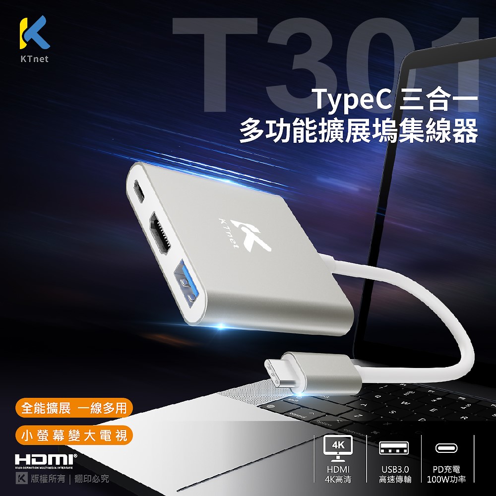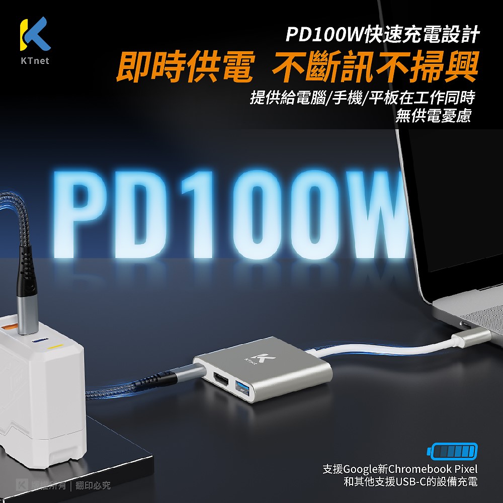 ◎ TYPEC 3合1 4K-100W影音轉接器 影音/資料傳輸/充電 三合一
