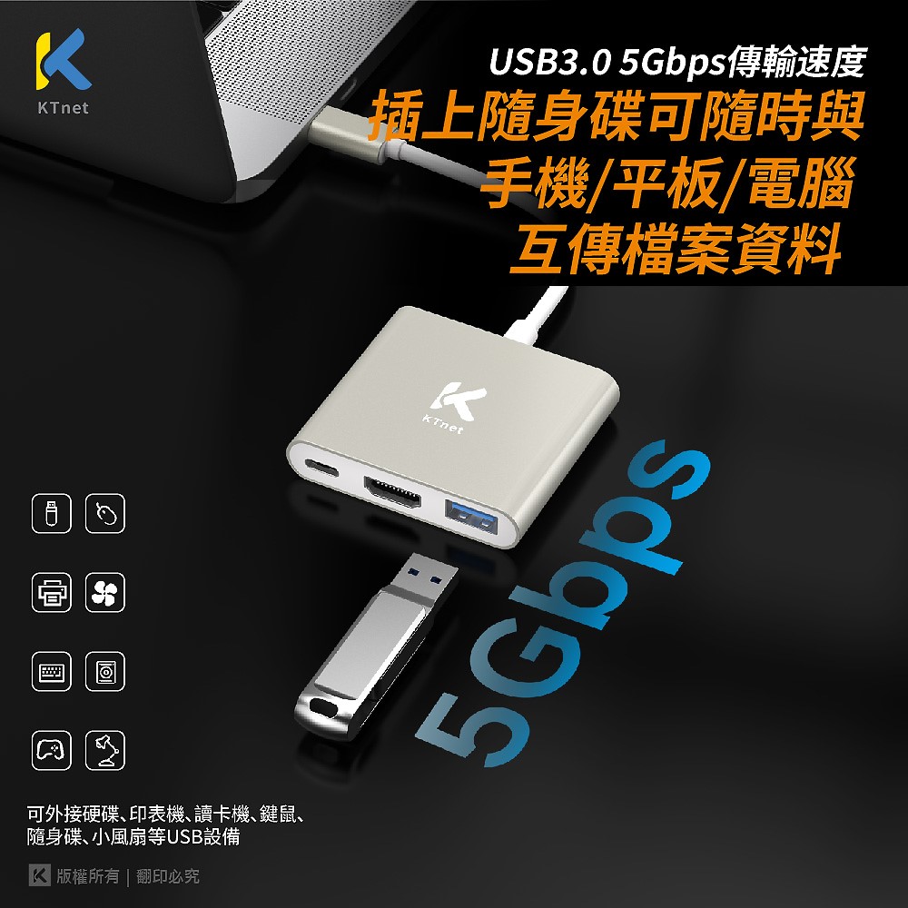 ◎ TYPEC 多功能擴充線器.連接多種設備