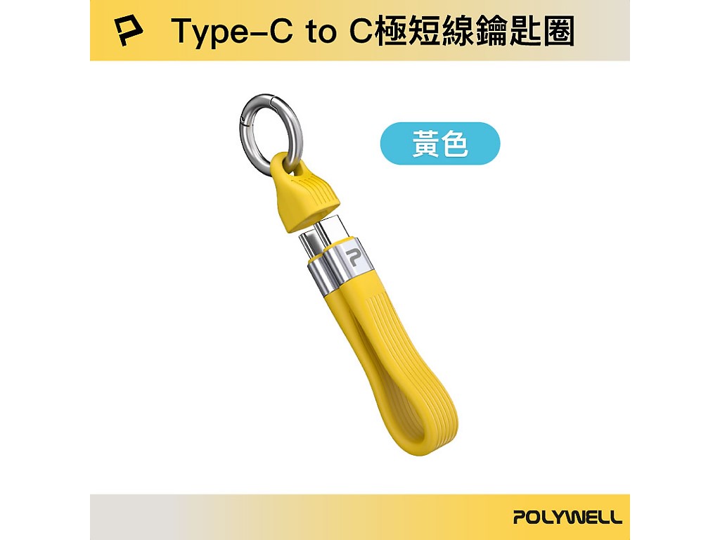◎ 黃色 Type-C To Type-C 極短PD快充線鑰匙圈