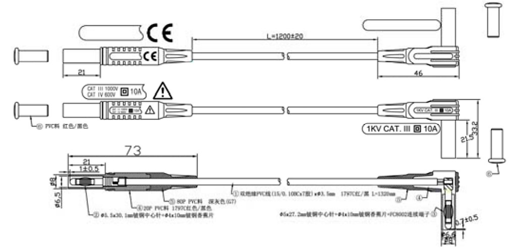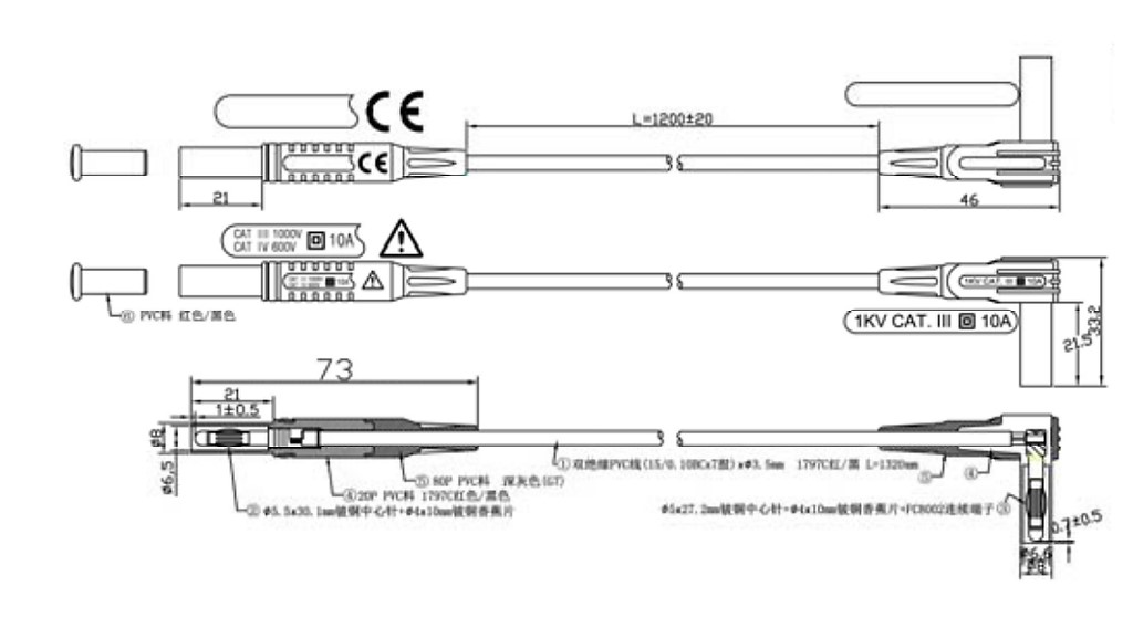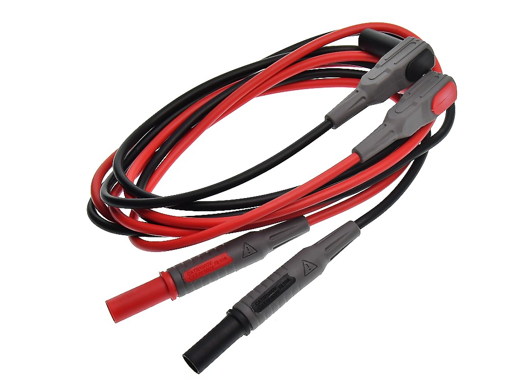 產品具備高規格防護,支援最高 1000V/10A 電流量測,並採用雙層絕緣 PVC 線材與防護型護套設計,確保在電力檢測時提供穩定的絕緣表現。高品質鍍鎳銅中心針與香蕉片接頭,能保證低阻抗連接,提供長久耐用的接觸性能。