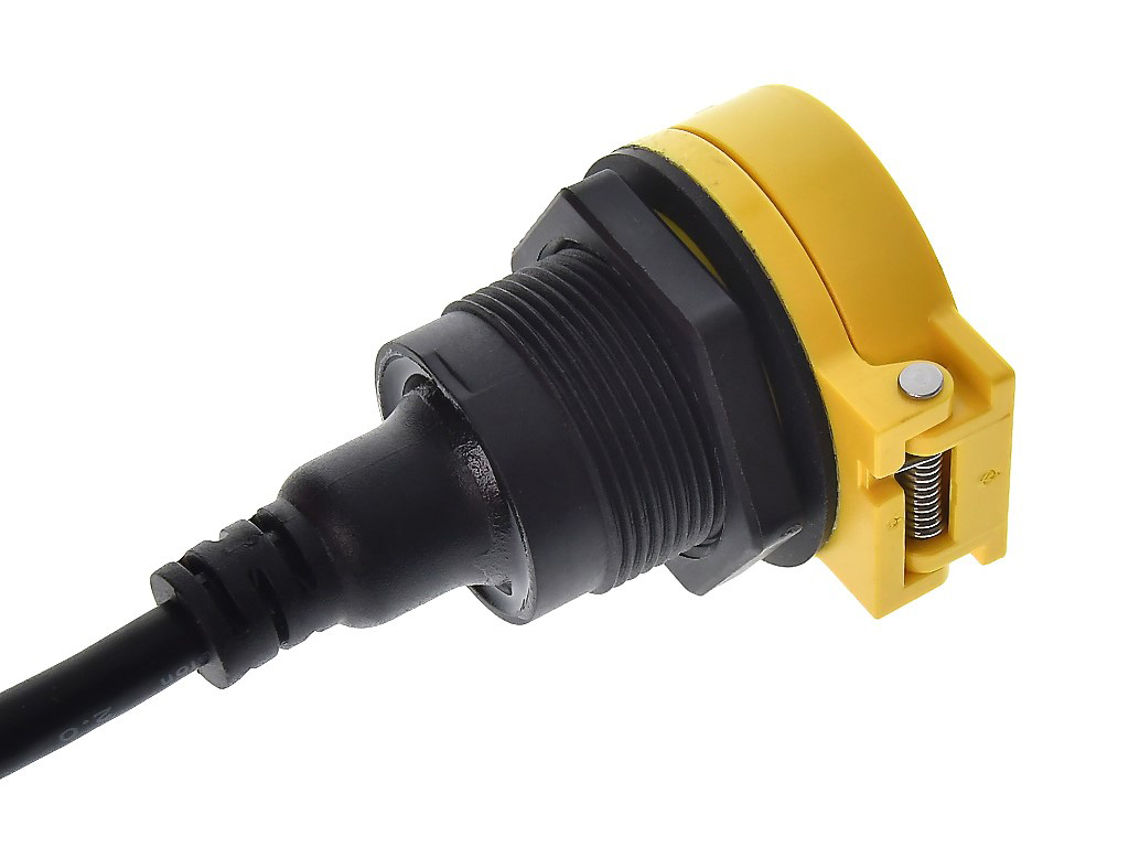 此產品具備 IP65 防護等級與 -40 至 80℃ 的寬溫耐受力,極適合應用於自動化生產線、戶外監控系統及車載設備。其黃色自動彈回外蓋設計,能有效在非使用狀態下阻絕灰塵、水氣與油污侵入,保護關鍵數據傳輸介面免於損壞。